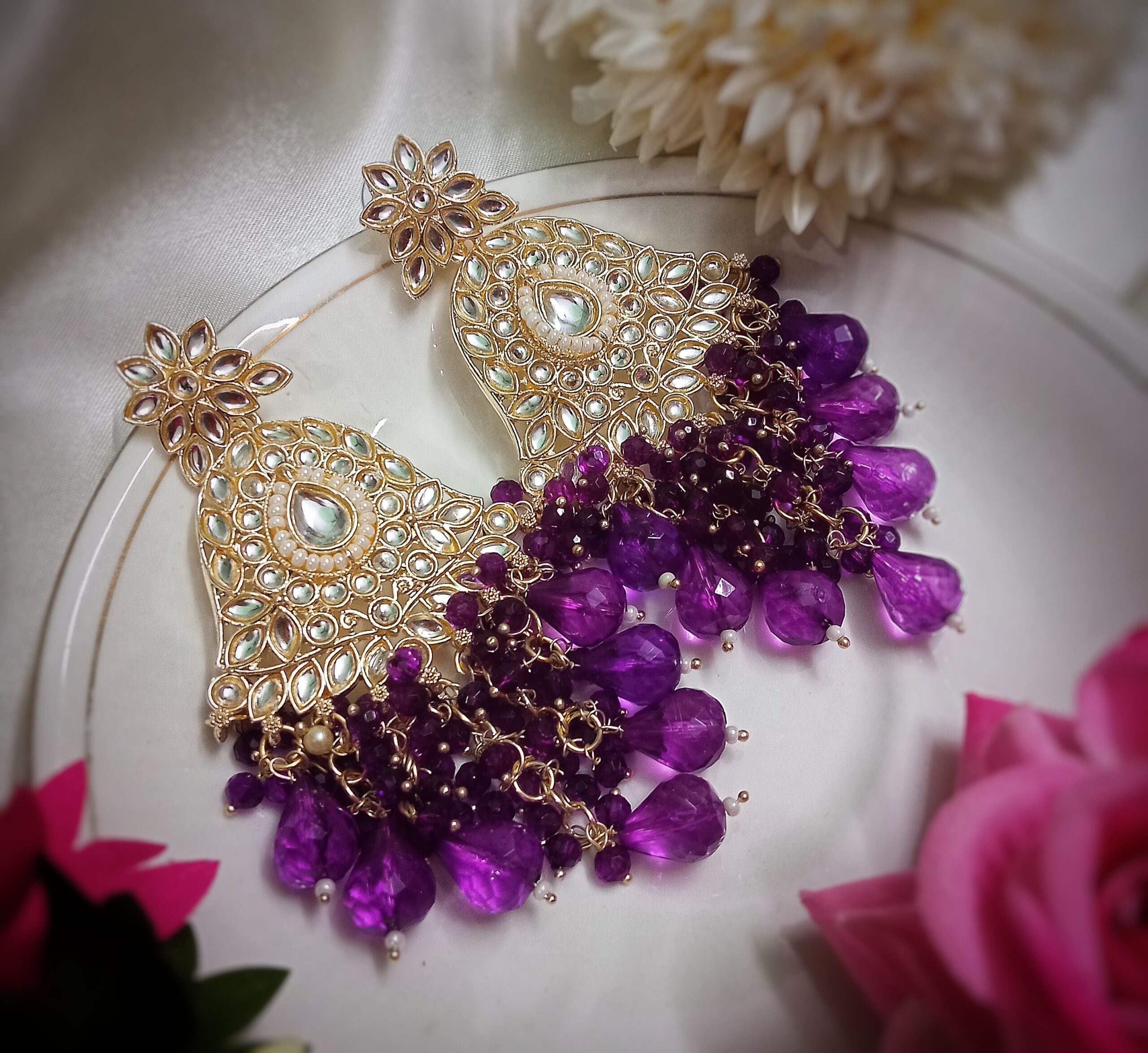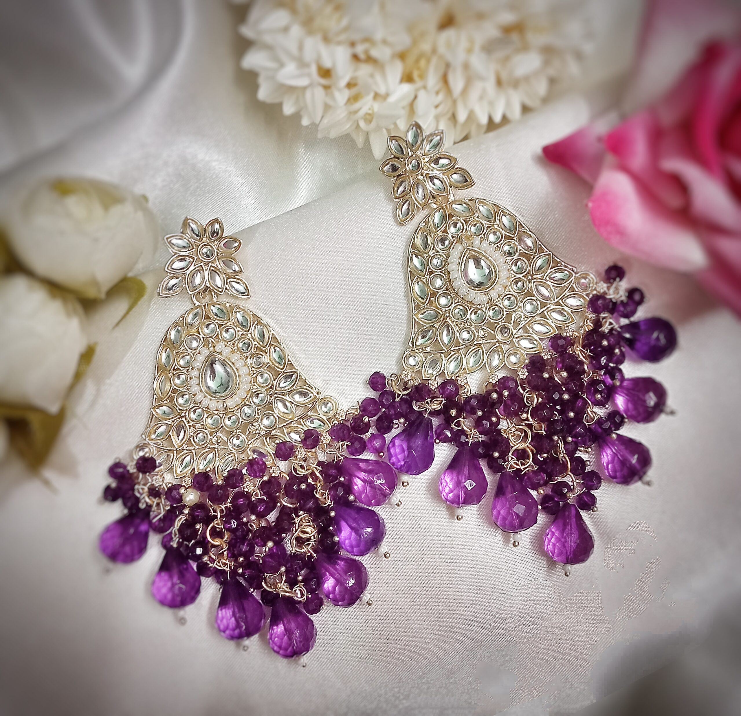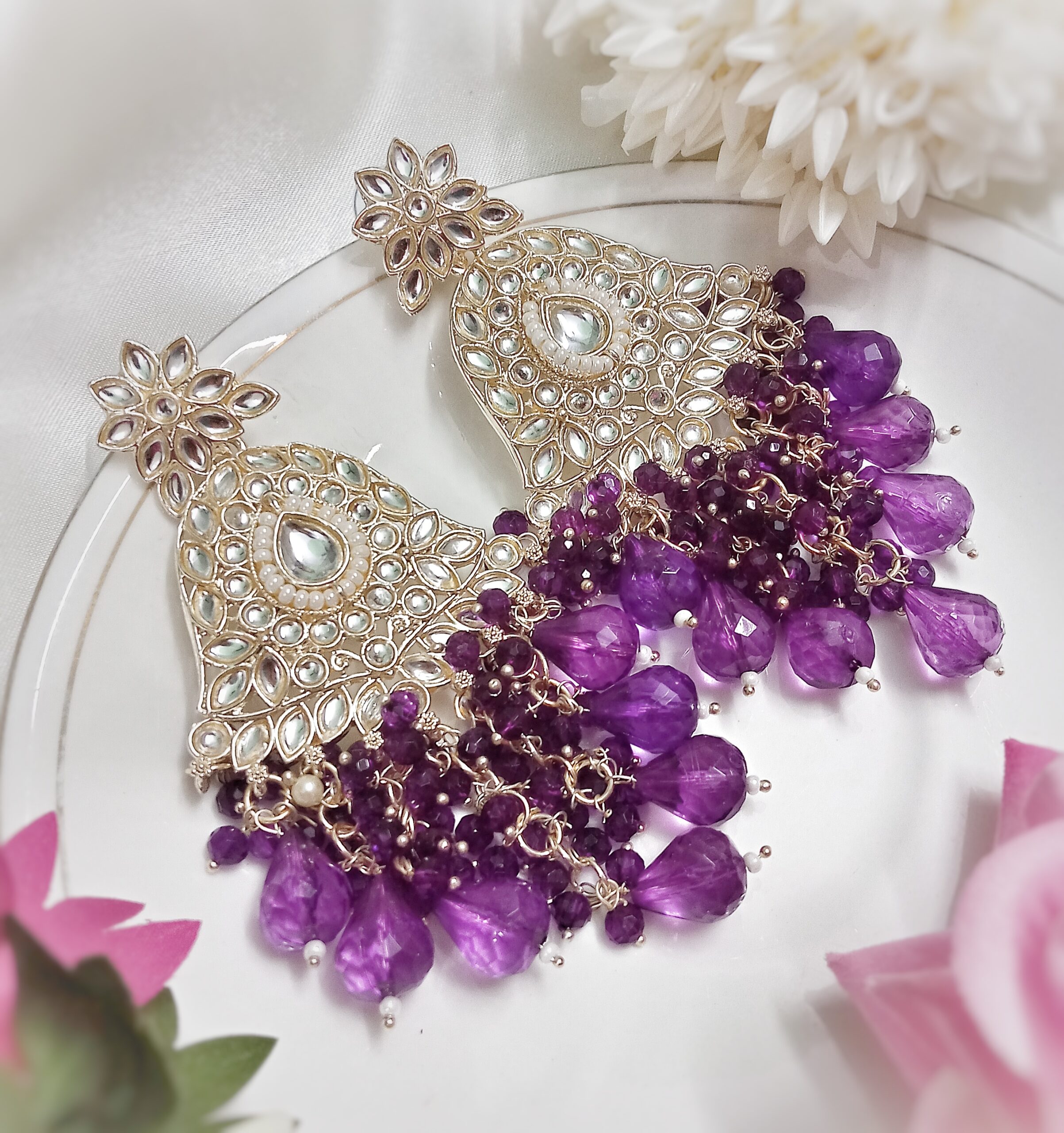 5 reviews for Kyra Kundan Earrings (Purple)