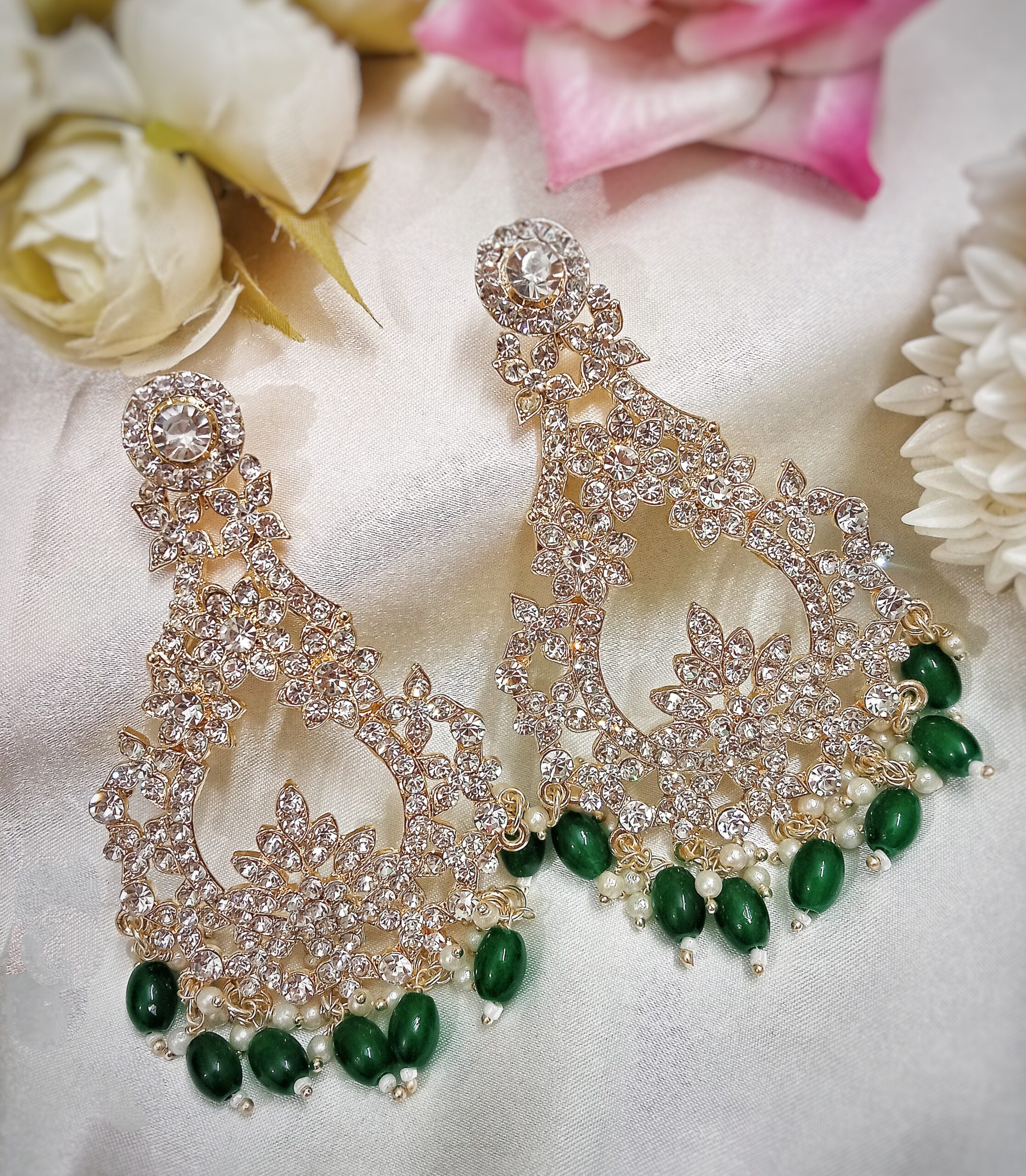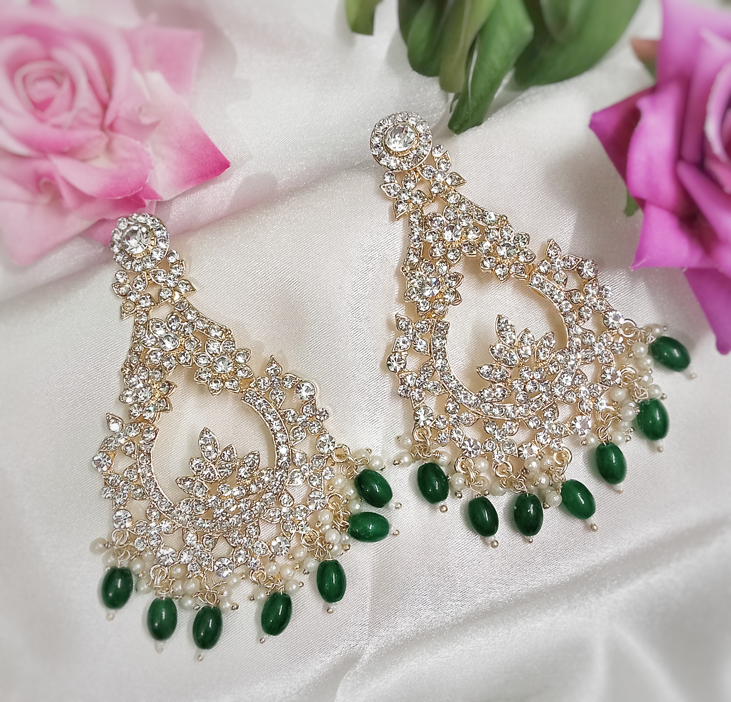 Myza Chandbali Earrings (Emerald Green)