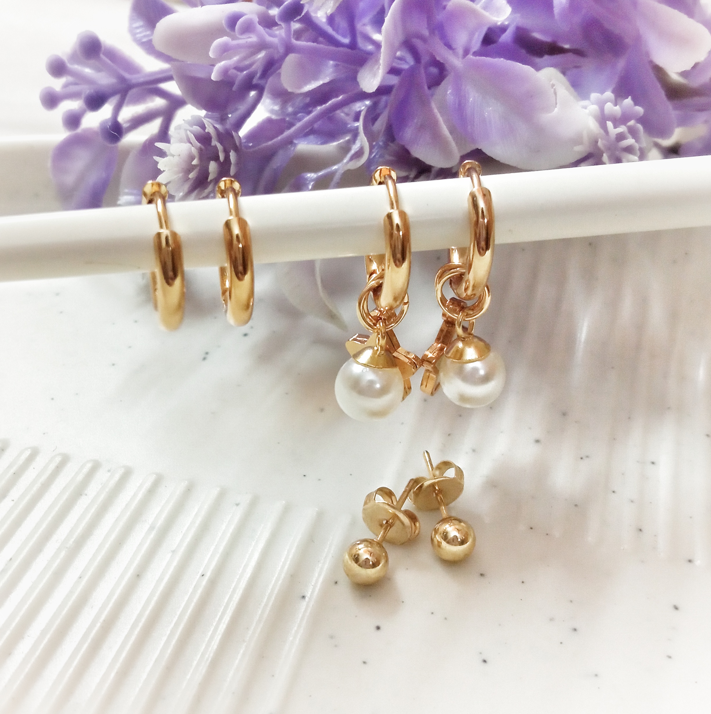 Description: A versatile set of three—chic mini hoops with pearl & star charms, classic plain hoops, and timeless round ball studs. The perfect mix of elegance and everyday charm, designed to elevate any look effortlessly.